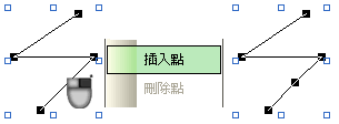 - 連接線、多邊形物件,提供了插入點/刪除點功能,可以在線段上任一位置插入一個節點,利用滑鼠拖曳製作您想要的圖形。