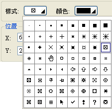 - 提供符號、線、水平線、垂直線、連接線、矩形、圓、橢圓、弧、扇形、多邊形物件,可以使用。