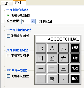 - 彈出式鍵盤,不佔畫面空間,數值輸入時才彈出來使用,配合多語的功能就可以做出不同語言的鍵盤。