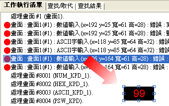 在錯誤的訊息處,滑鼠左鍵點二下,軟體會指向顯示錯誤的物件。