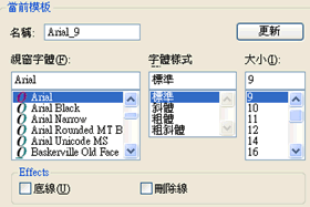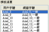 字體的模板清單可以定義20種 Windows 字型,使用上直接選用更加方便。