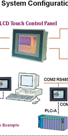 | 提供基本人機相關通訊功能,配備兩組串列通訊埠(一個RS232/RS485通訊埠、一個RS232/422/485通訊埠),5.7"LCD單色顯示面板、Touch Panel、1MB FLASH-ROM;與AP規劃軟體的配合應用可提供客戶多功能及最可靠的工業級人機介面。 |