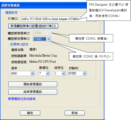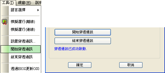 在工具欄,設置穿透通訊後,開始穿透通訊。