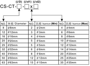 | CS-CT-12 | 12 | 5 | 18.5 | 2.5 | M2.5 |