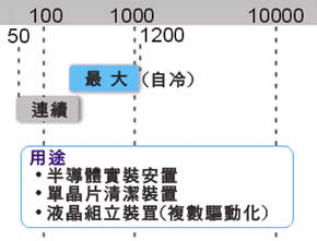 | 無塵室機械手臂裝置間搬送 | 低粉塵 高速定位控制 2m/s 往返精度 0.1 mm |