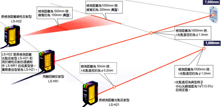 | 長檢測距離光點反射型 | 長檢測距離線性反射型 | |||