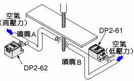 檢測支管的損壞: 兩個噴嘴以不同的壓力提供空氣,如果支管有 損,低壓力邊噴嘴的壓力受到高壓力邊噴管空 氣影嚮,可檢測壓力的這種改變 。 |