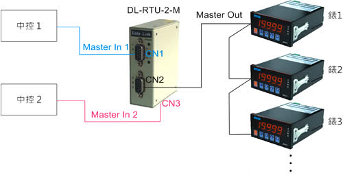 架構中,只能有一個 Master 在此,可以讓您有 2 個 Master 用。 * 中控 1 / 中控 2 : 程式相同都可以抓取錶 1、錶 2、錶 3 * 可新增錶頭 |