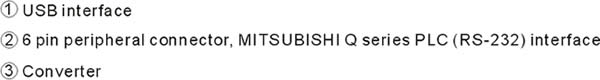 interface RS232, 6 pin peripheral connector compatible with MITSUBISHI Q series PLC |